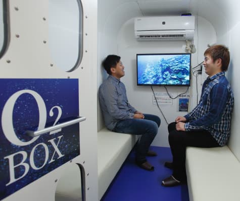 最大6人まで入れる広い部屋型の酸素ボックスですから、寝ることも座ることもでき、より快適にリラクゼーションできます。